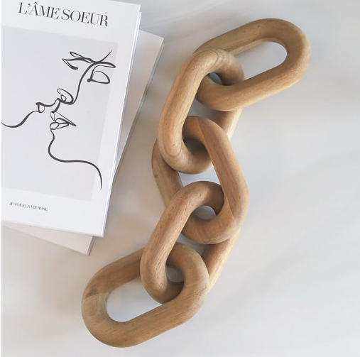 This 5-link wooden chain is the ultimate styling accessory. As shown in the photo, the light blonde wood grain is visible and adds a raw, organic touch to any stack of books or coffee table tray.